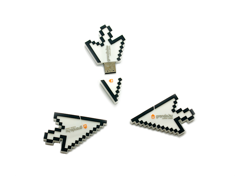 Kurzor alakú, egyedi pendrive. Bármilyen egyedi formájú pendrive-ot el tudunk készíteni, legyen az akár a cég emblémája, vagy egy terméke.